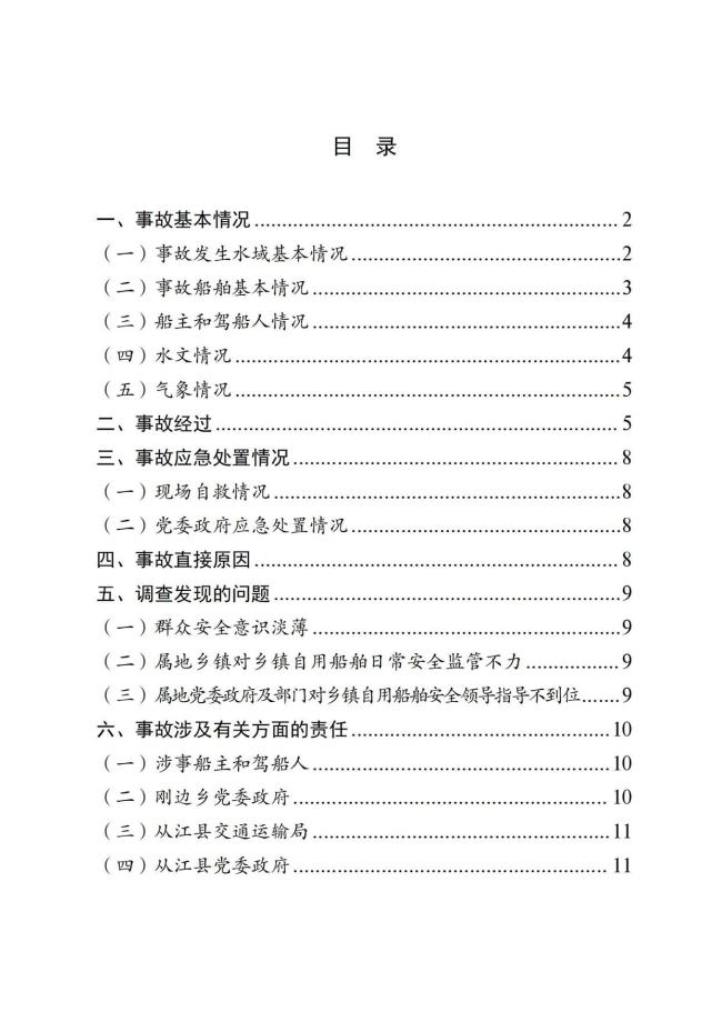 2024年12月2日9时12分许,黔东南州从江县平允河背雷水电站库区距电站大坝约4.3公里处水域,一艘载有13人的城镇自用船只行进途中淹没。经查询确定,这起事端是因为个人违规驾驭未经检丈、挂号的城镇自用船只,不合法载客,严峻超载,以及属地党委政府办理不到位,有关部门辅导不力所形成的。